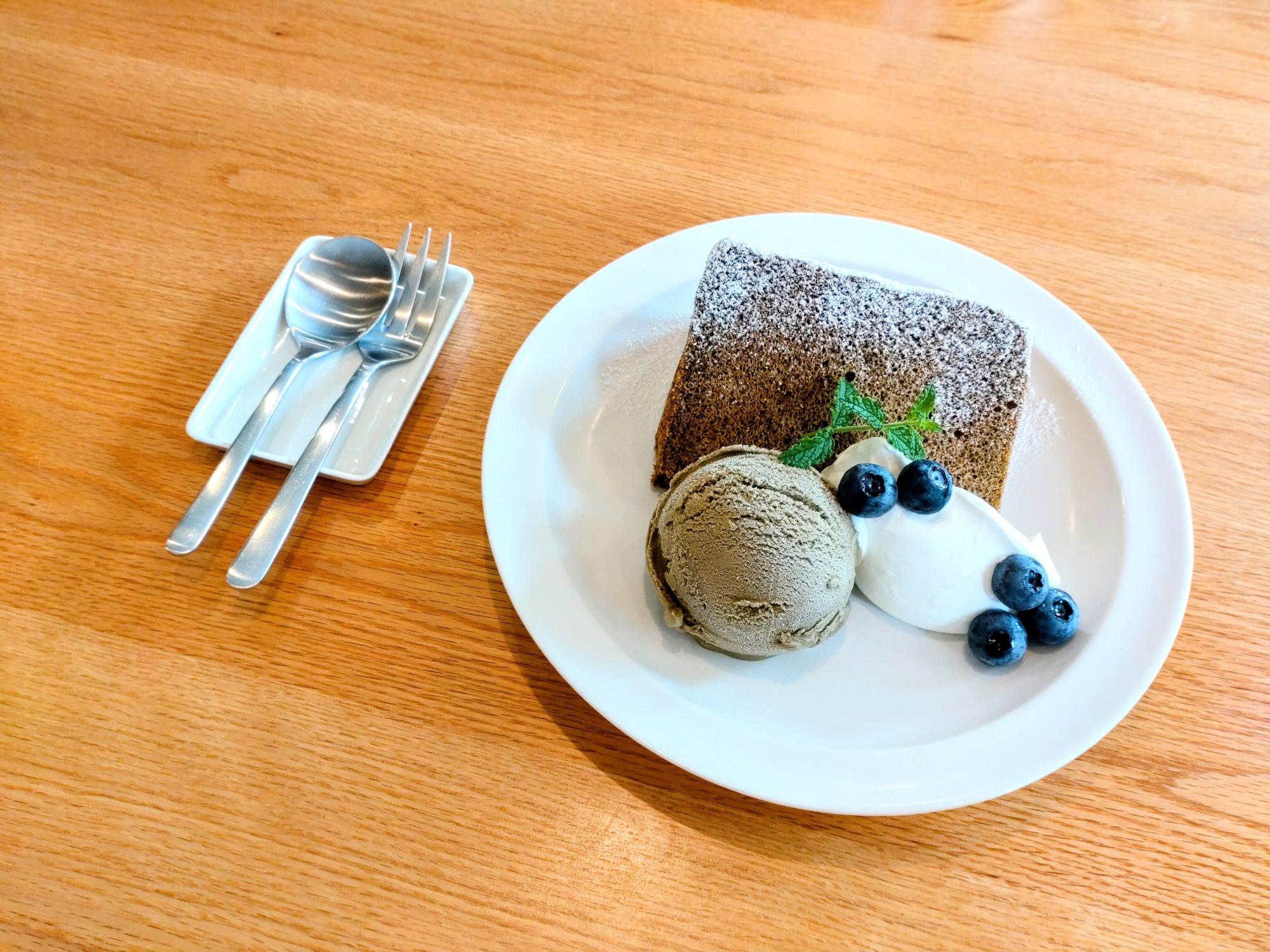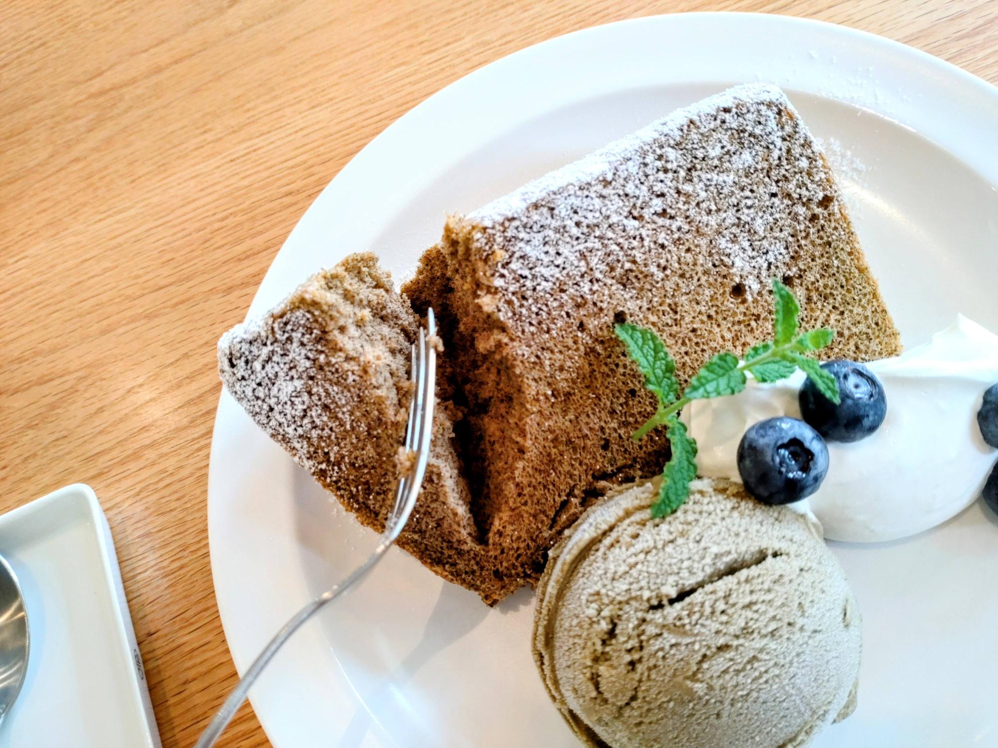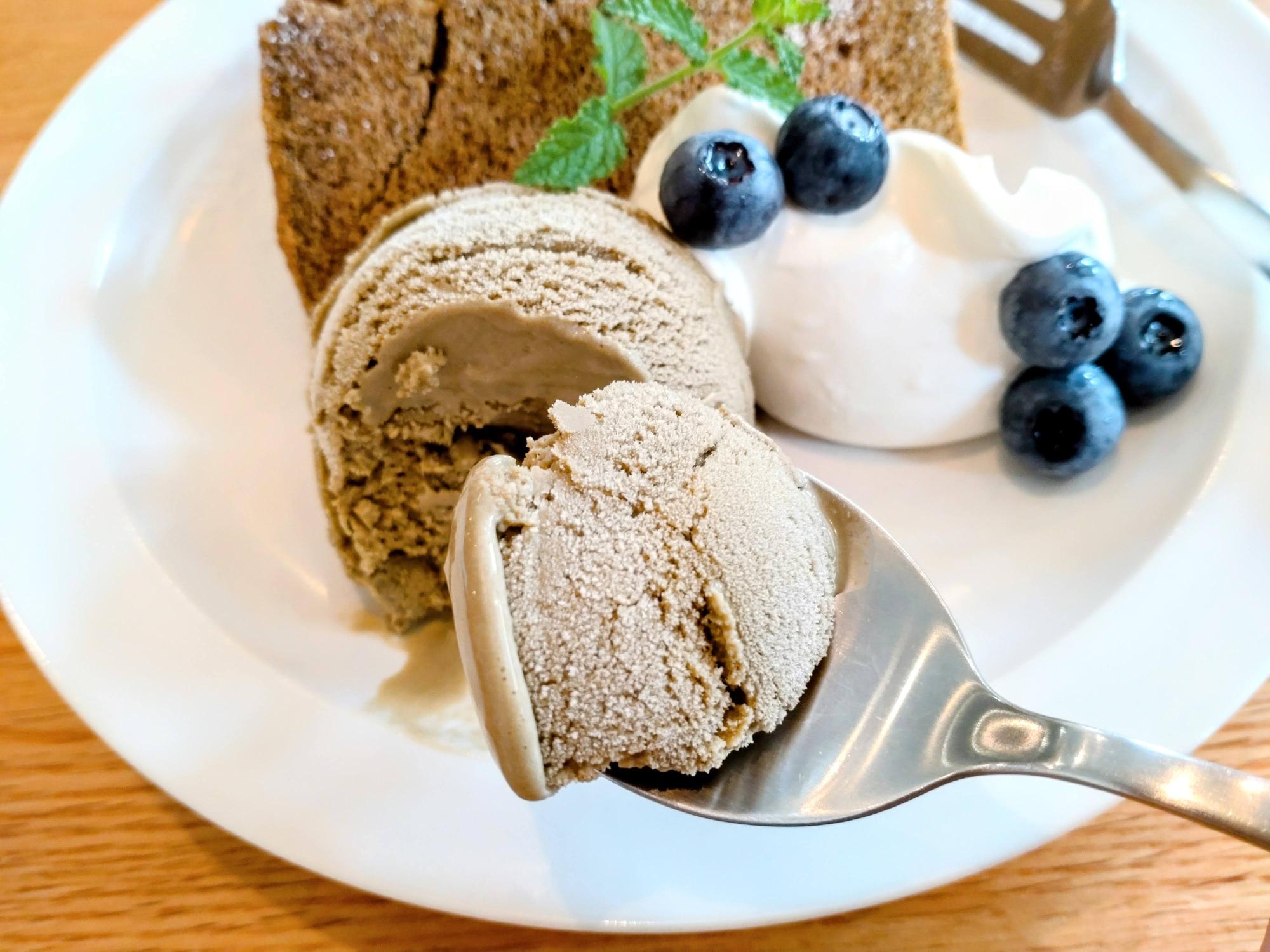 ほうじ茶のシフォンケーキ、ほうじ茶のジェラートと、ほうじ茶尽くしが嬉しい一品。
