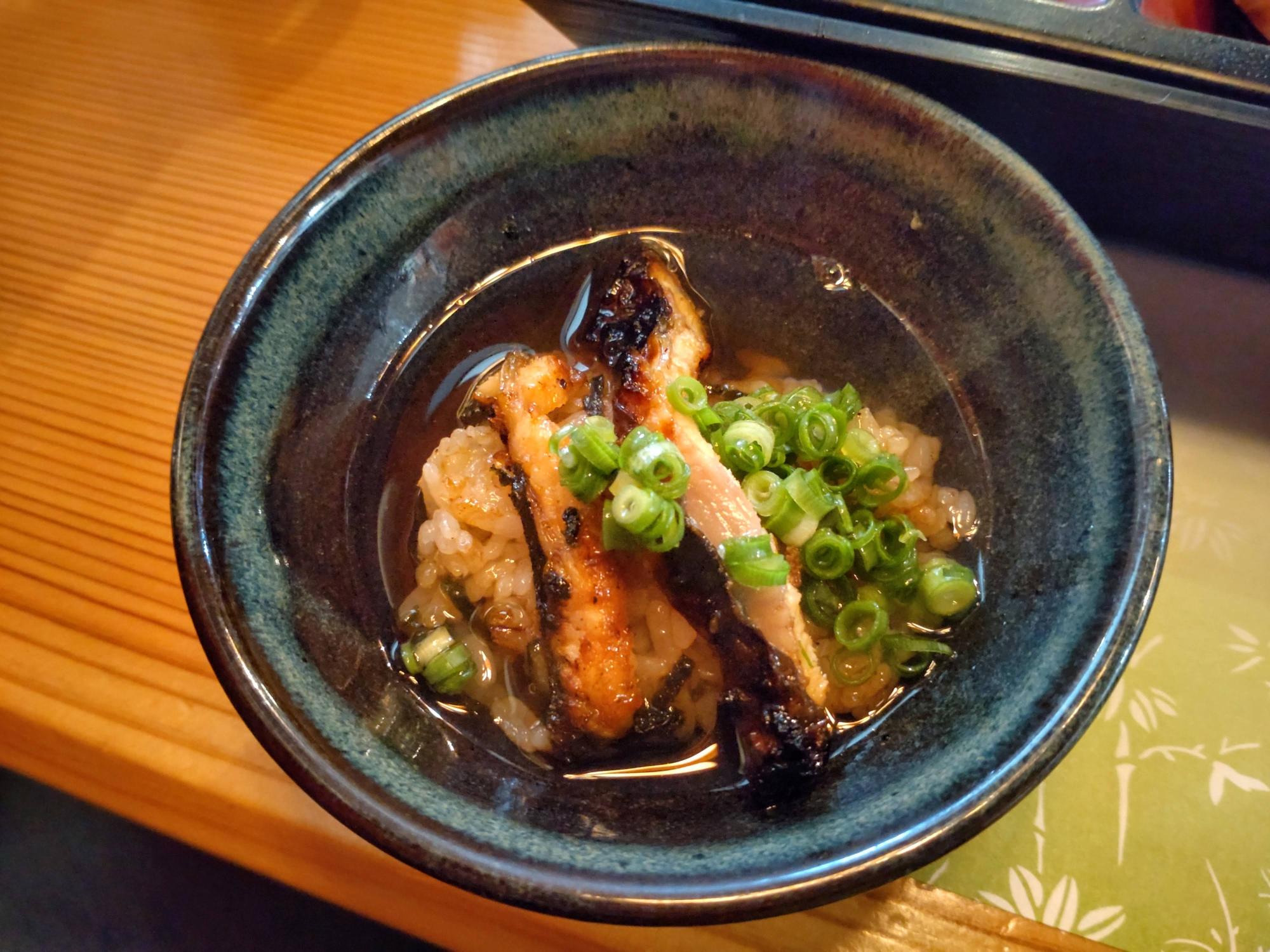 薬味をかけて出汁をかけていただくと、全く違う風味・味に!