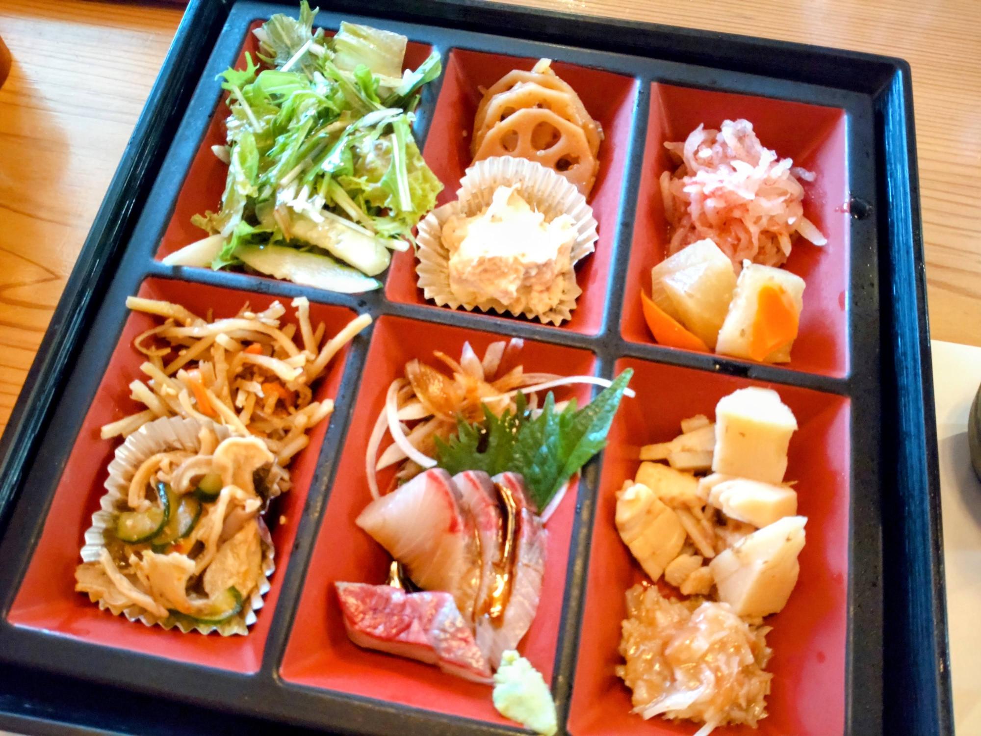 私は一番右上の大根と梅の和え物がお気に入りでした。