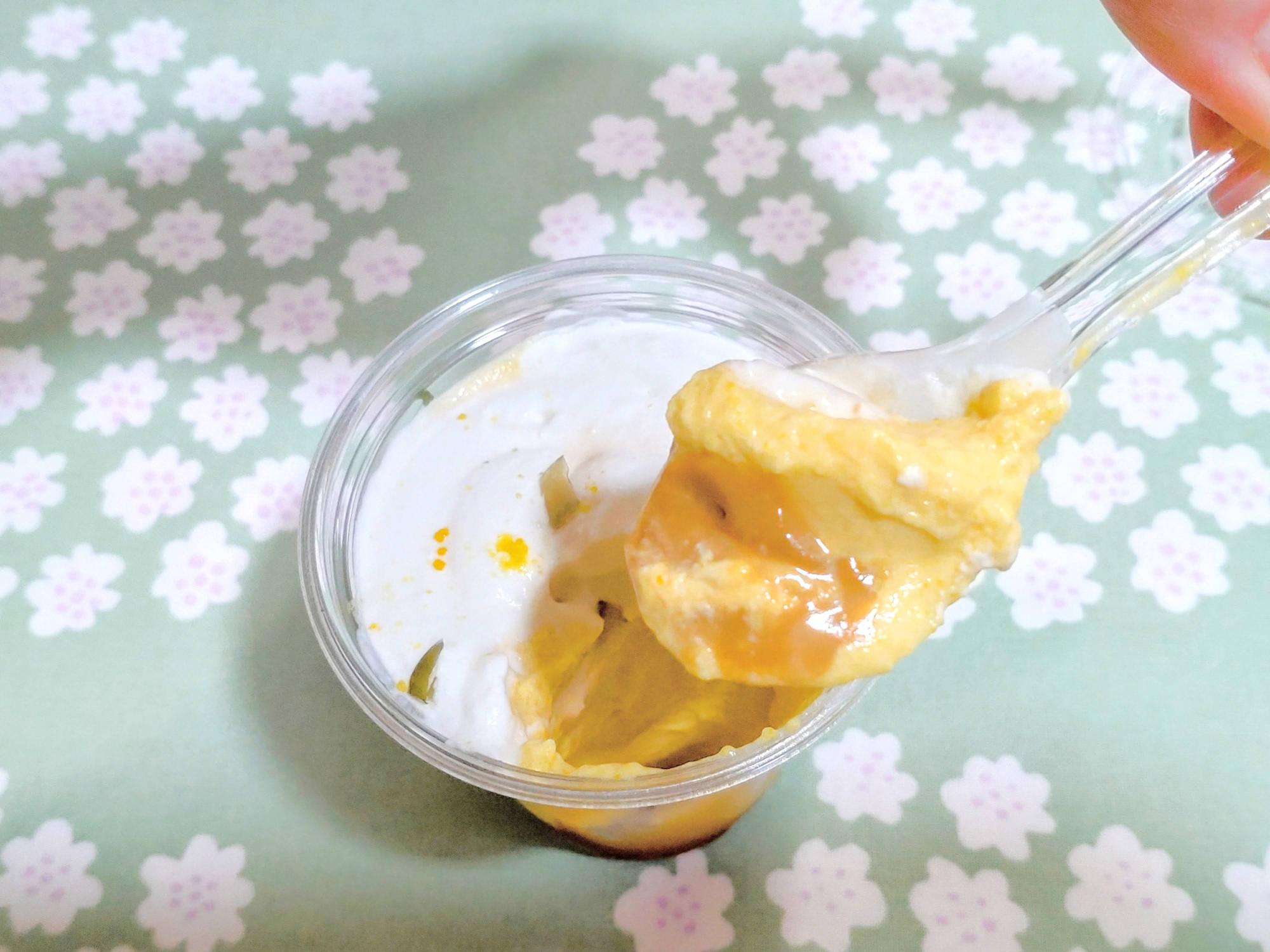 上の甘いクリームと素材本来の甘さが際立つかぼちゃプリン、このほろ苦いカラメルっを一緒に食べると…至福の味なんです。