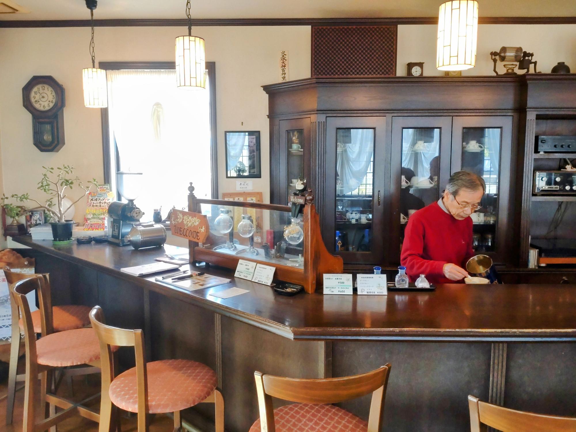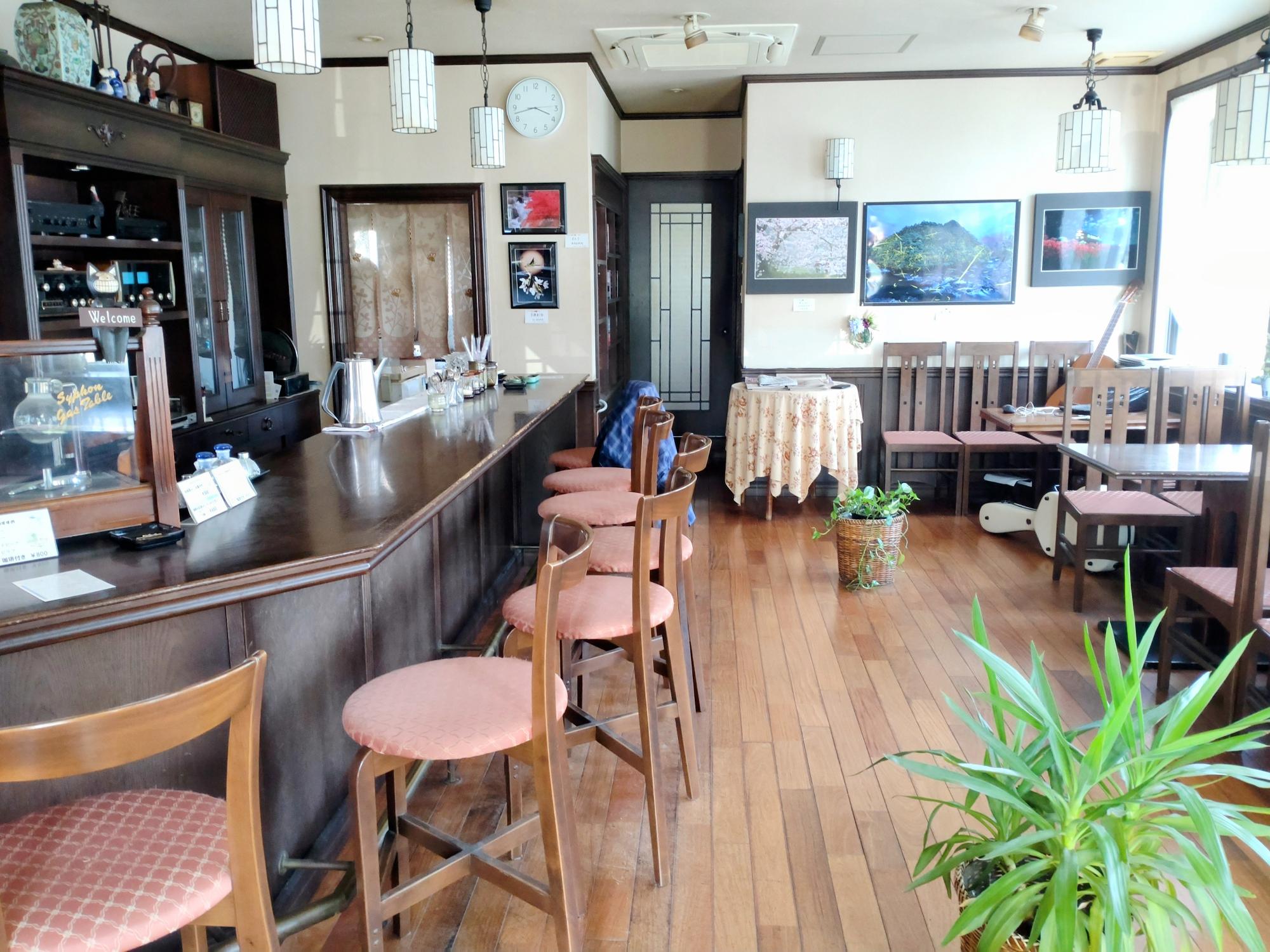 解放感がある広い店内はカウンター席とボックス席があり、珈琲のいい香りが店内に行き渡っています。
