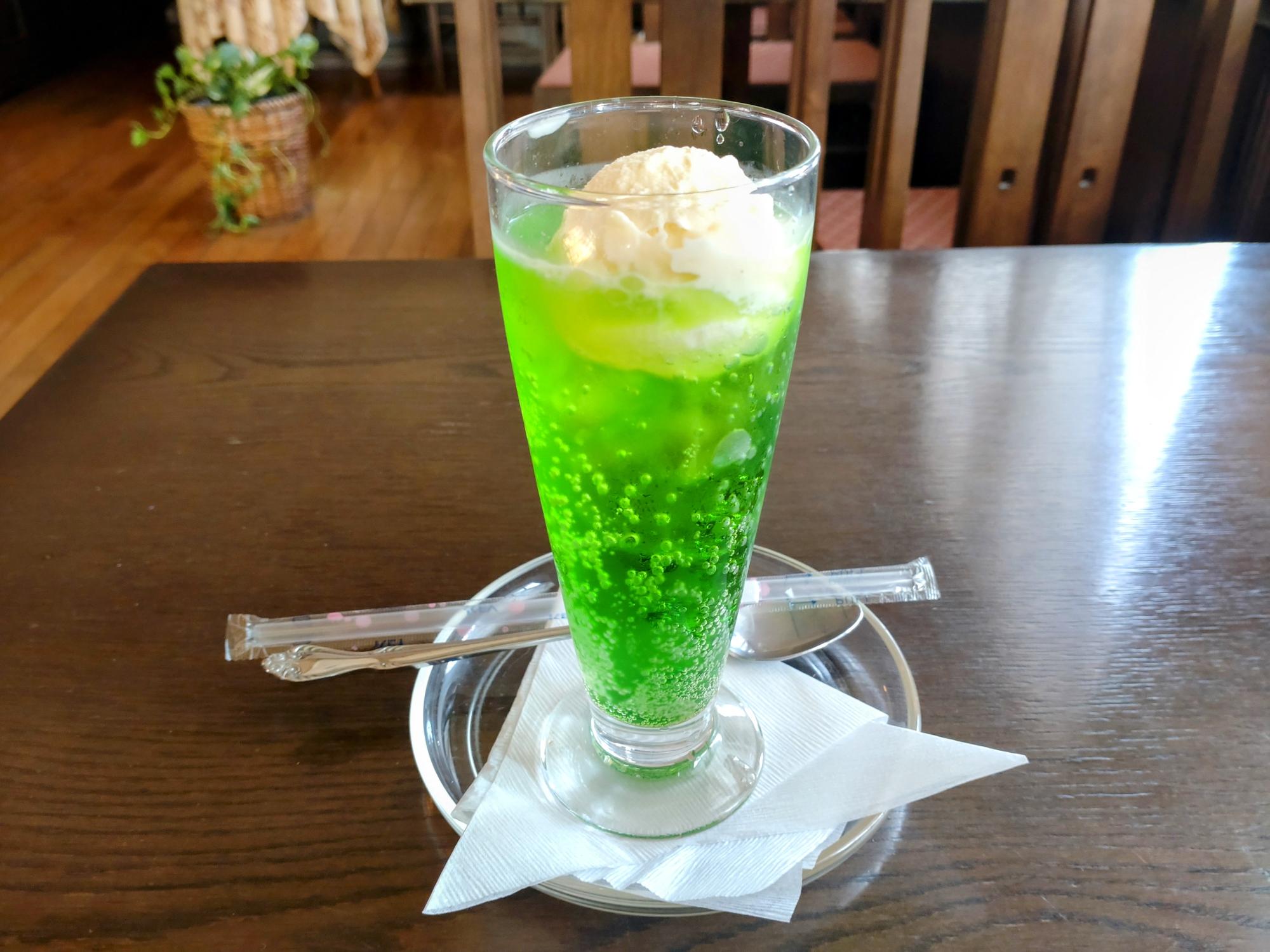 喫茶店と言えば、王道のクリームソーダは外せません。