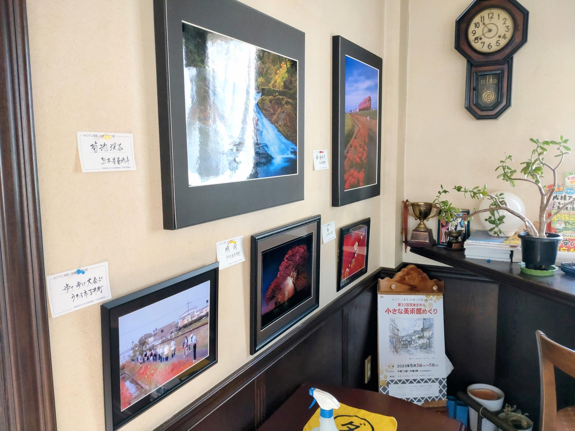 小さな美術館めぐりの展示会場になっている喫茶えくぼには、うきは市出身の写真家である松竹則之(まつたけのりゆき)さんの写真が展示されています。