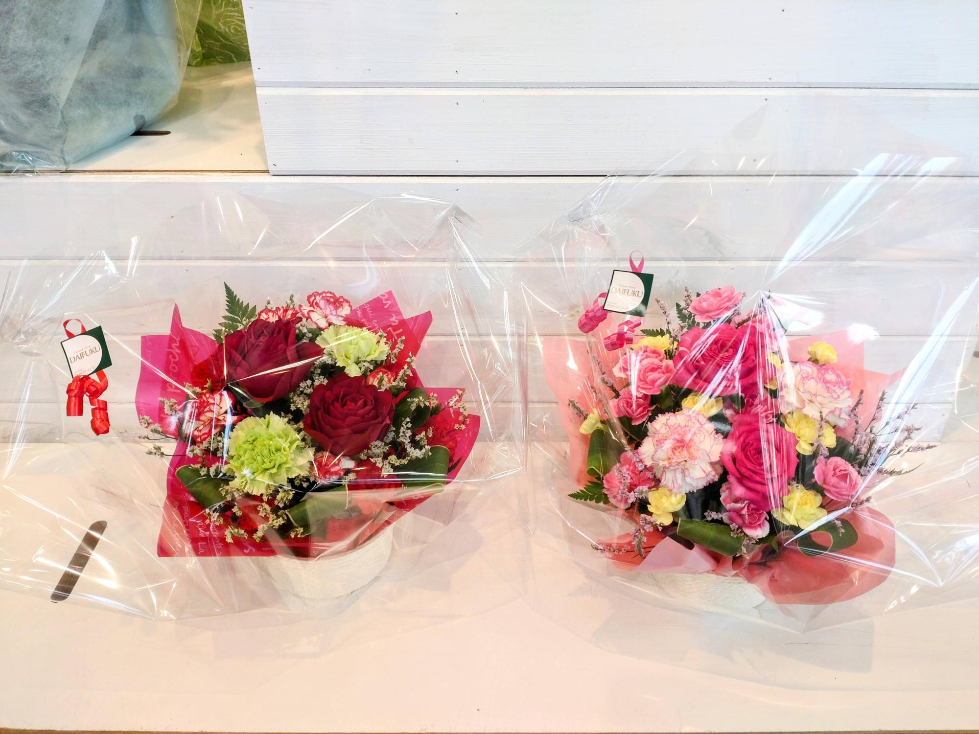フラワーアレンジメントは通常2,200円(税込)からの注文となっていますが、今回は、2つ合わせて3,300円(税込価格)。