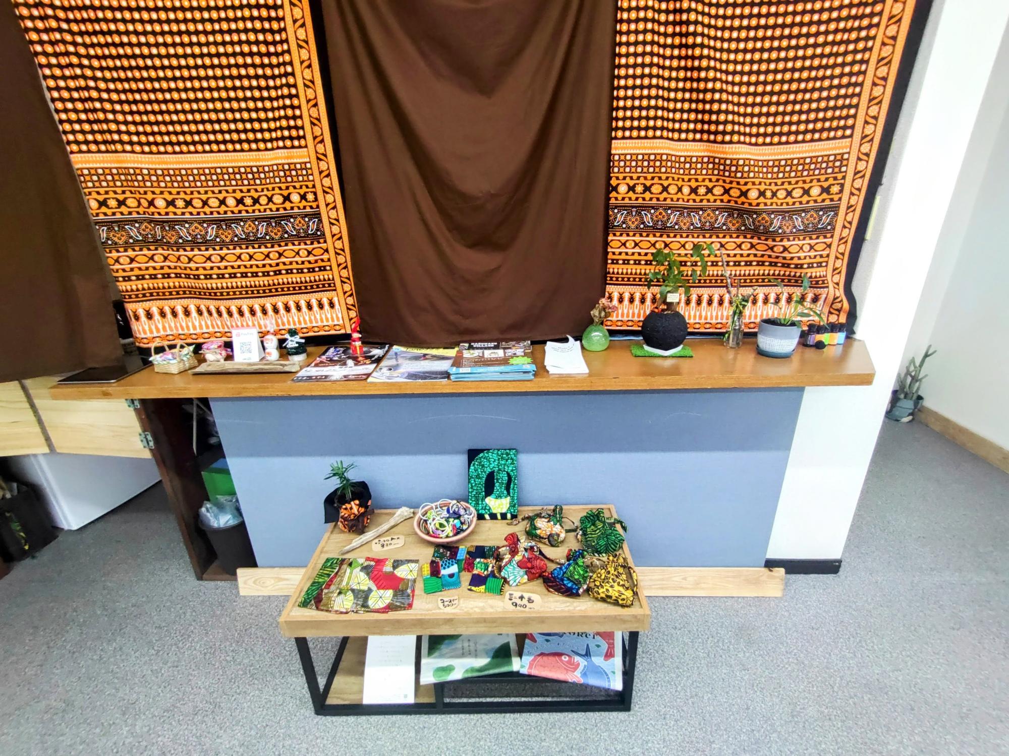 店内で販売しているアフリカンな雑貨や布製品もたくさん!