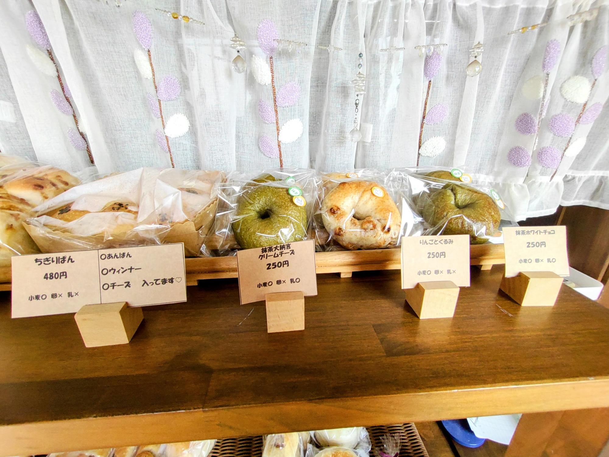 季節が感じられる抹茶やりんごなどの食材が使われたベーグル。