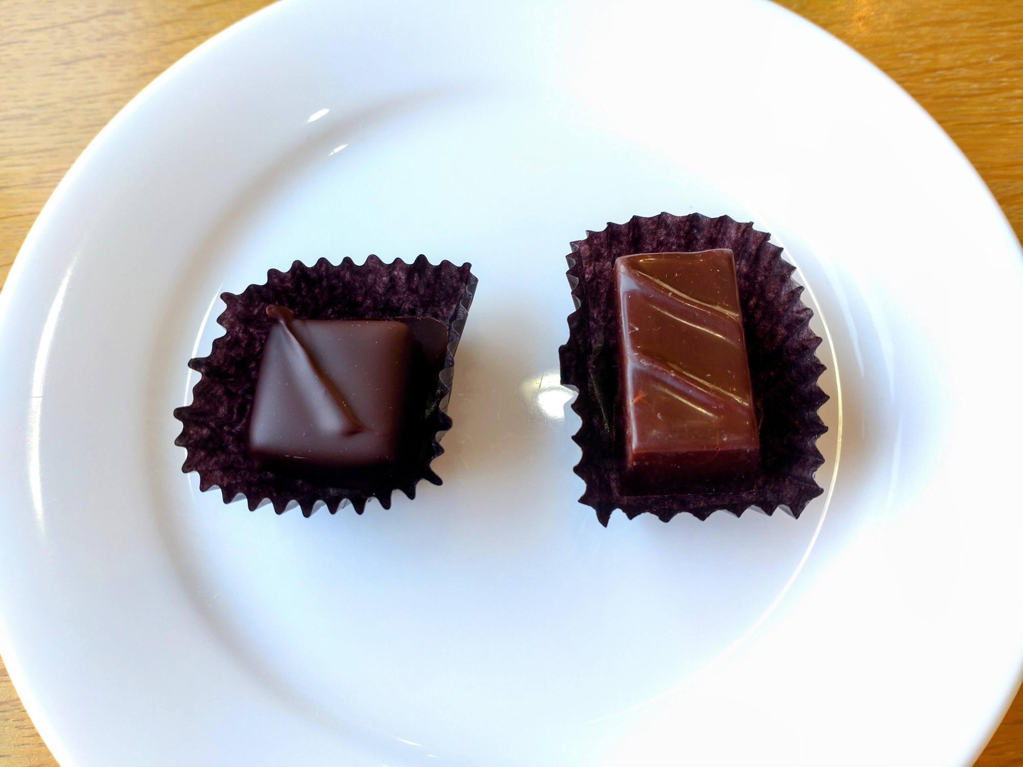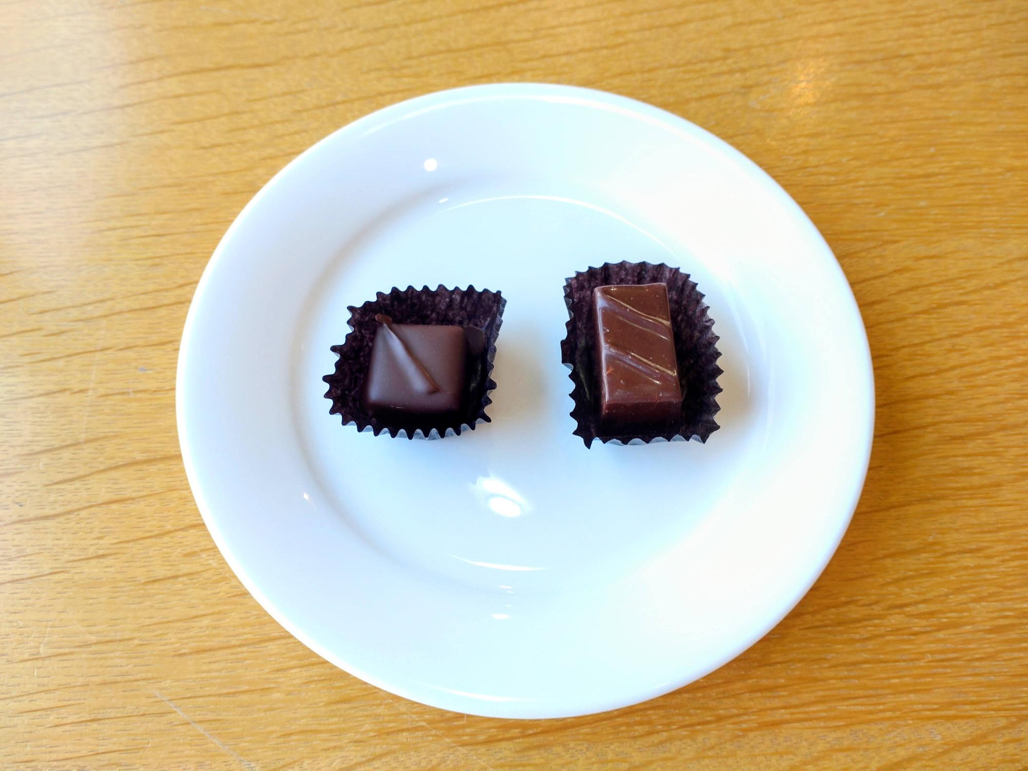 向かって左の正方形の「アマゾナス」は、アマゾン川の野生のカカオ豆とアールグレイで作られています。