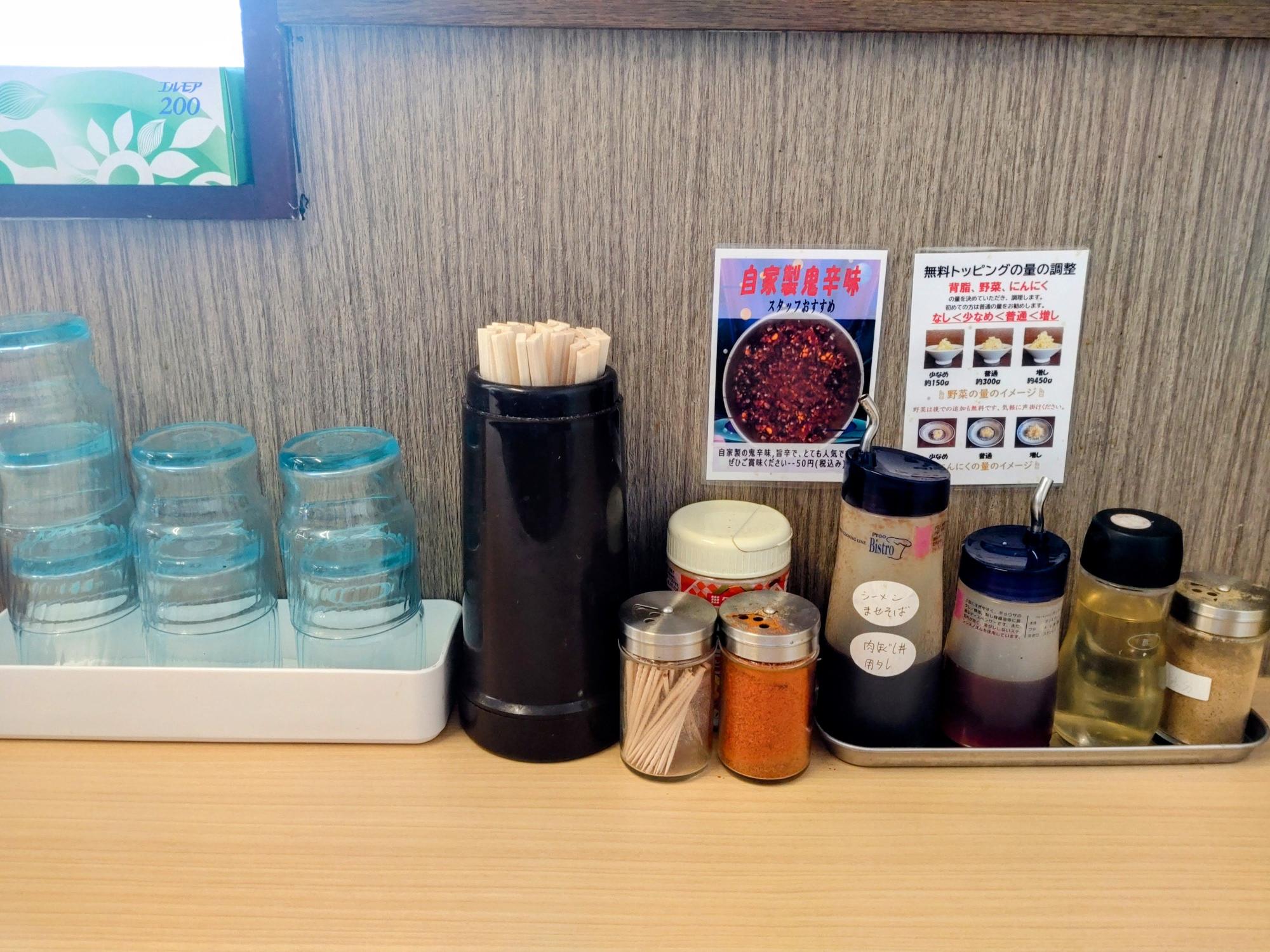 調味料も揃っているので味変も楽しめます。