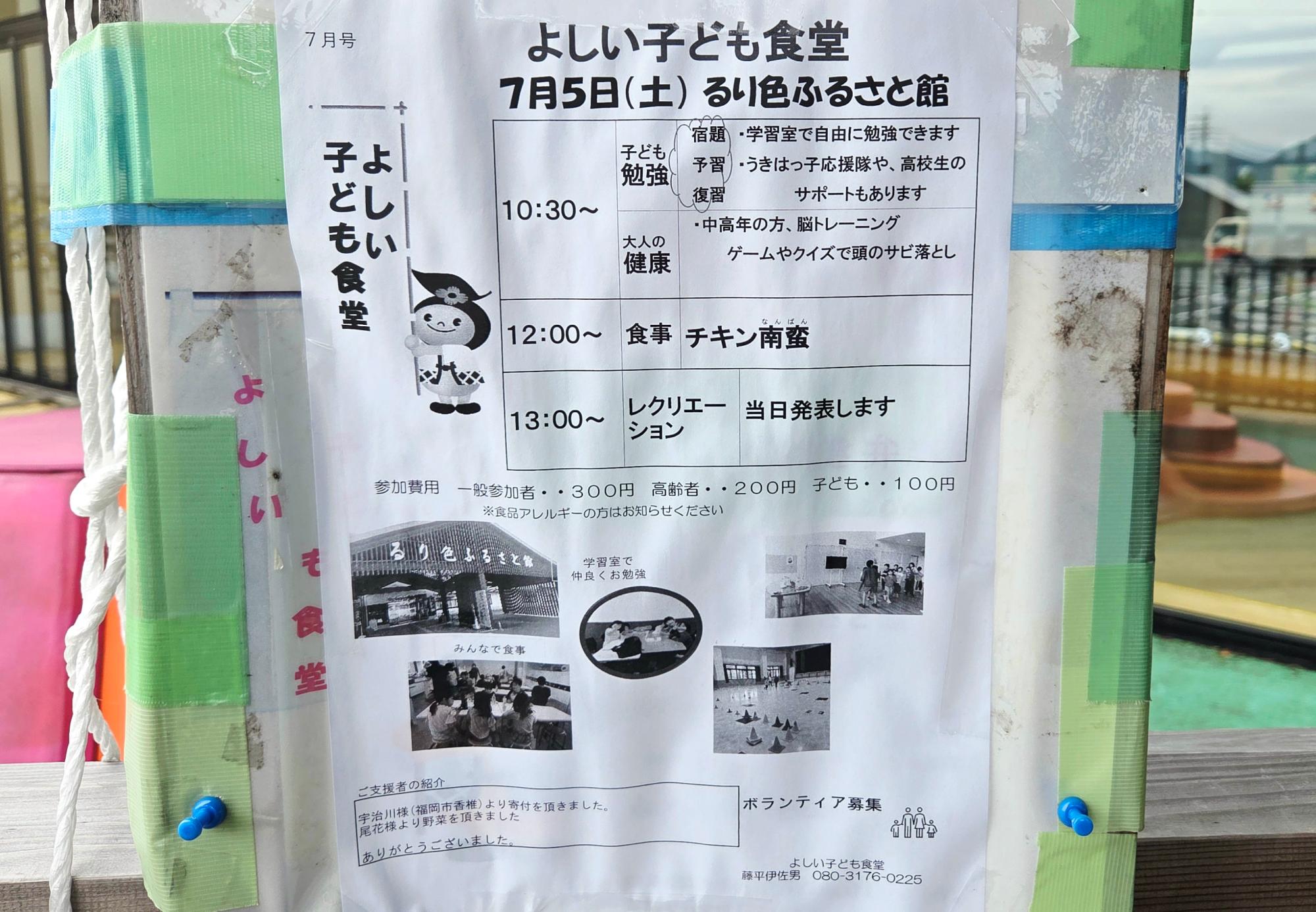 うきは市吉井町にある「るり色ふるさと館」調理室前では、毎月第二土曜日に『よしいこども食堂』が開催されています。