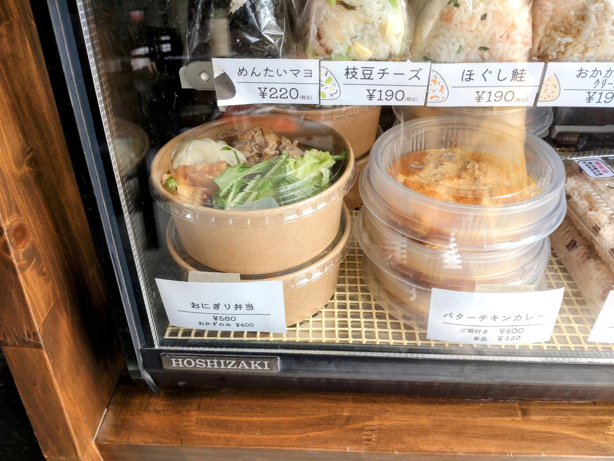ショーケースの中からおにぎり弁当用のおにぎりが2つ選べて、おかずとセットになっているお得感も口福感も抜群のお弁当です。