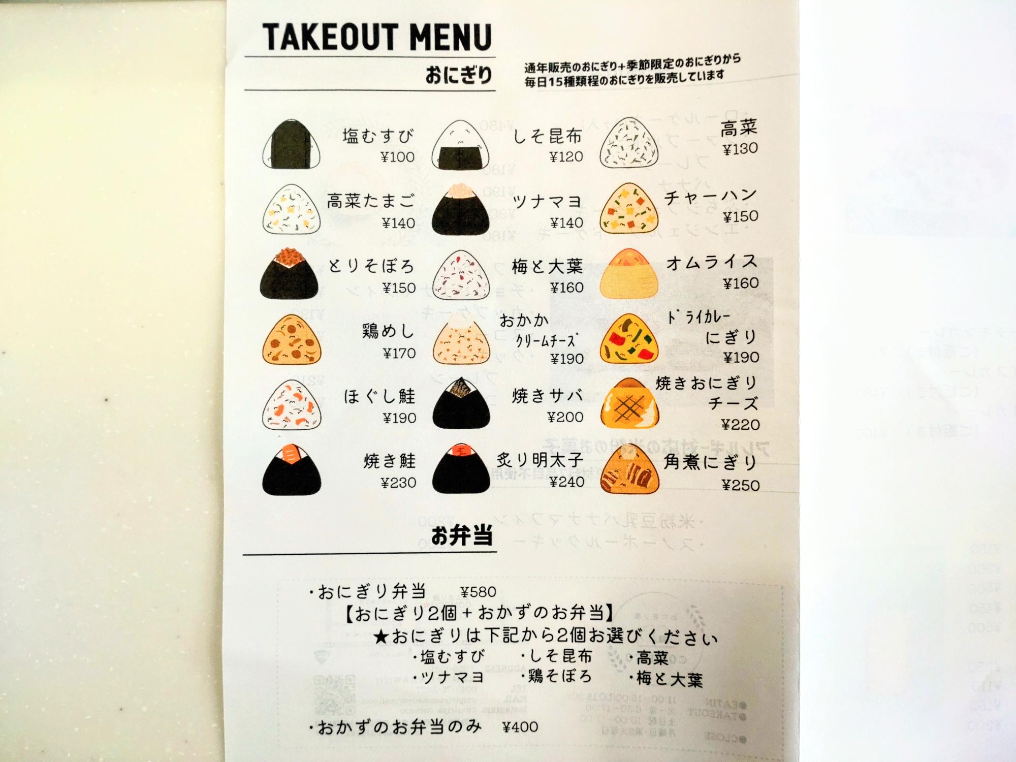 おにぎりのメニュー