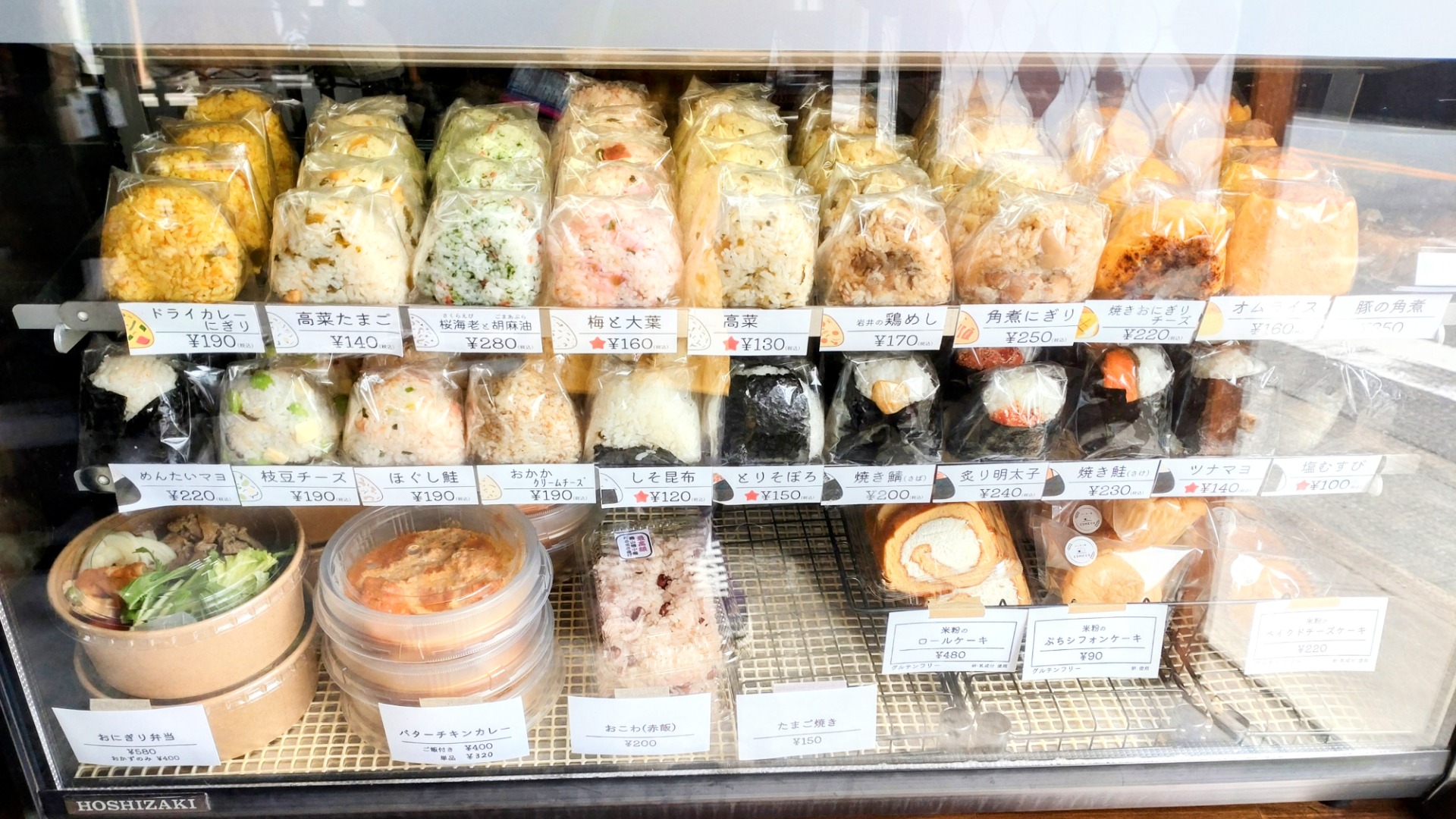 ショーケースの中からおにぎり弁当用のおにぎりが2つ選べて、おかずとセットになっているお得感も口福感も抜群のお弁当です。