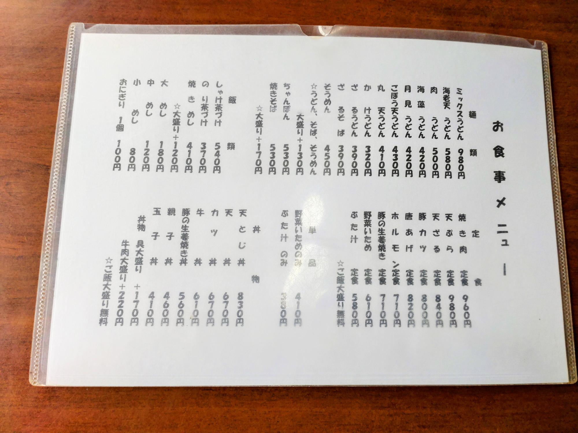 お店の看板に書いてあるちゃんぽんも迷いましたが、この日は暑かったため、定食・丼もの・子ども用にかけうどんを注文しました。