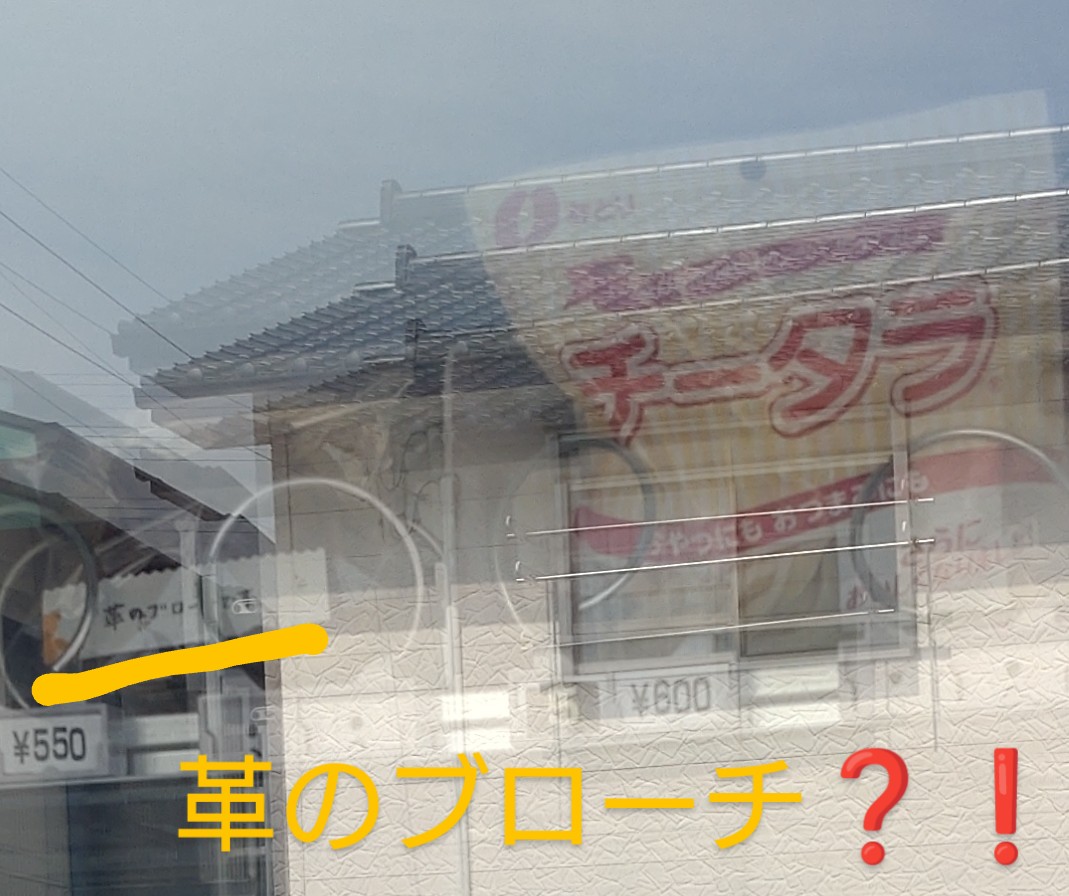 左上に「革のブローチです」と書かれた商品が!