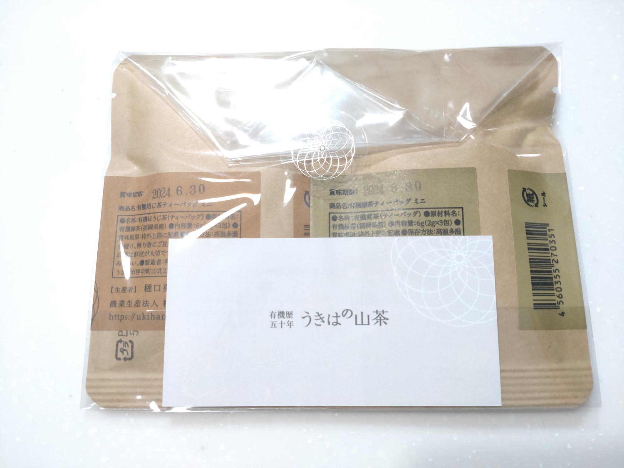 有機緑茶・有機焙じ茶ティーバッグ 3包 各 150円