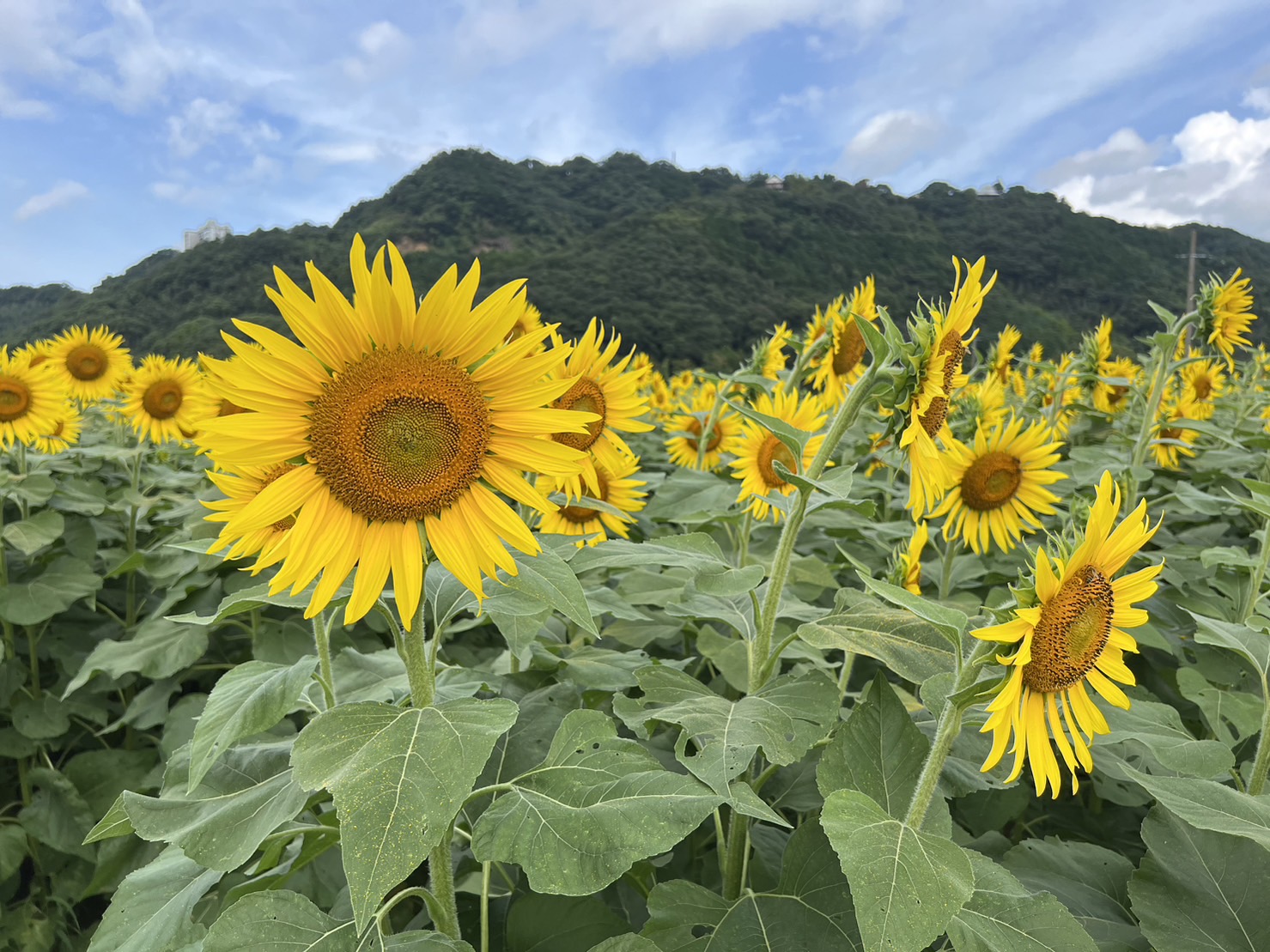 この一面のひまわり畑を間近で見て、元気と幸せのおすそ分けをもらいに足を運んでくださいね♪