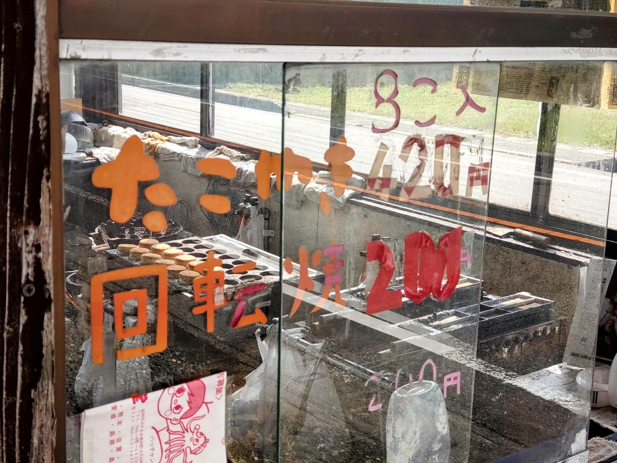 従業員は店主さん一人のため、一番初めにストック分のたこ焼きを焼いてから回転焼を焼き始めるそうです。
