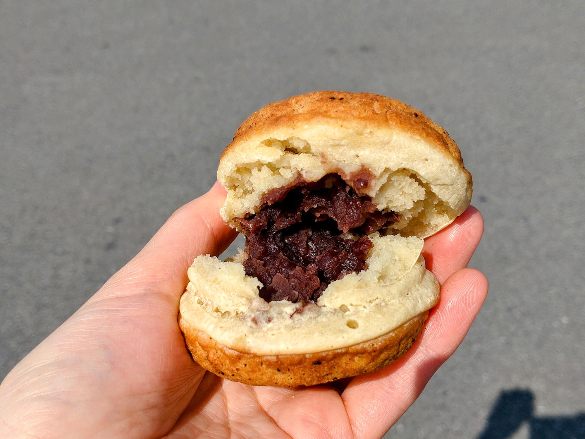 カリッとした甘い香りの生地に甘いあんが詰まっています。