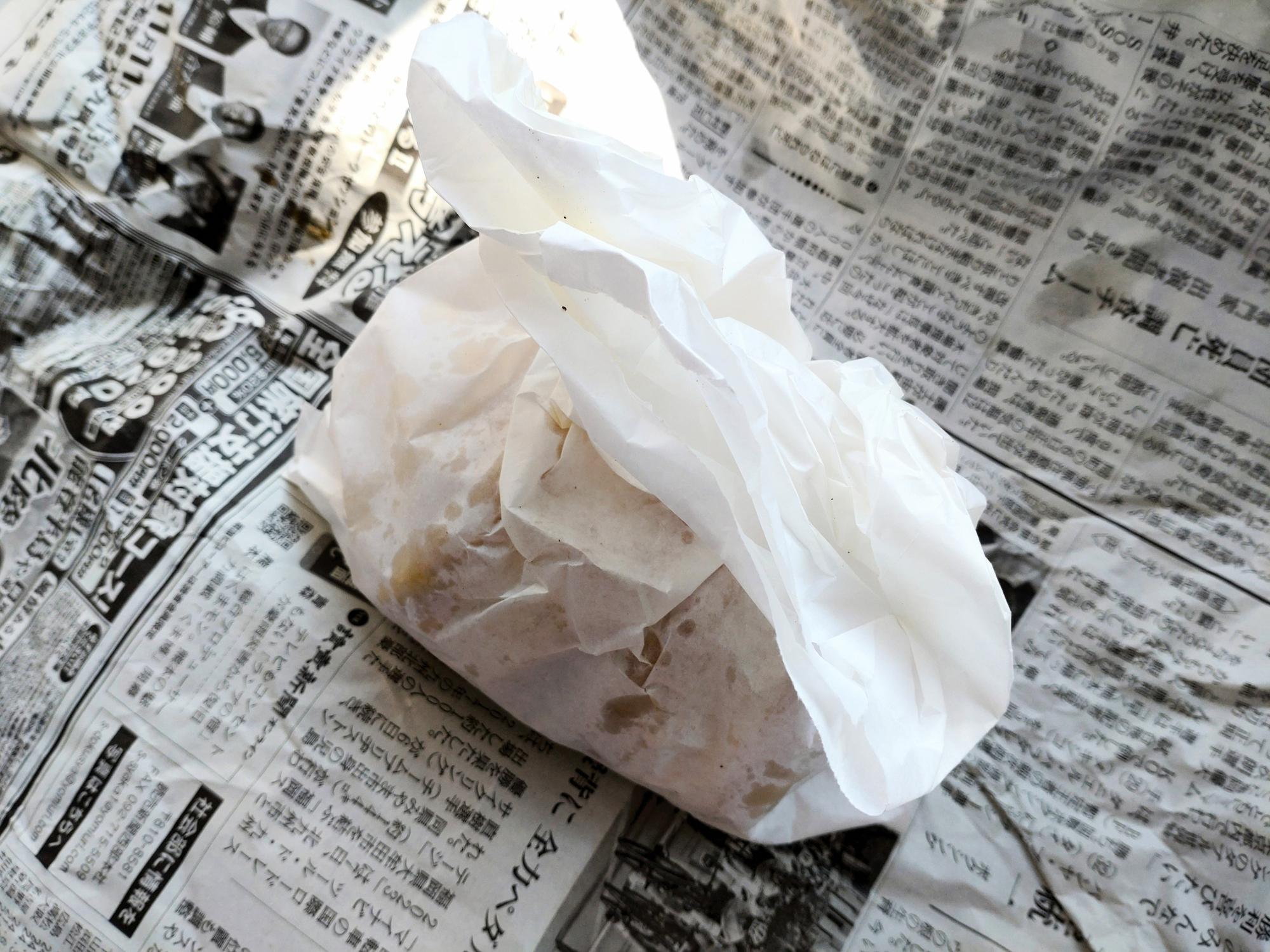 こんな感じで包装紙と新聞紙に包んでくださいましたよ。
