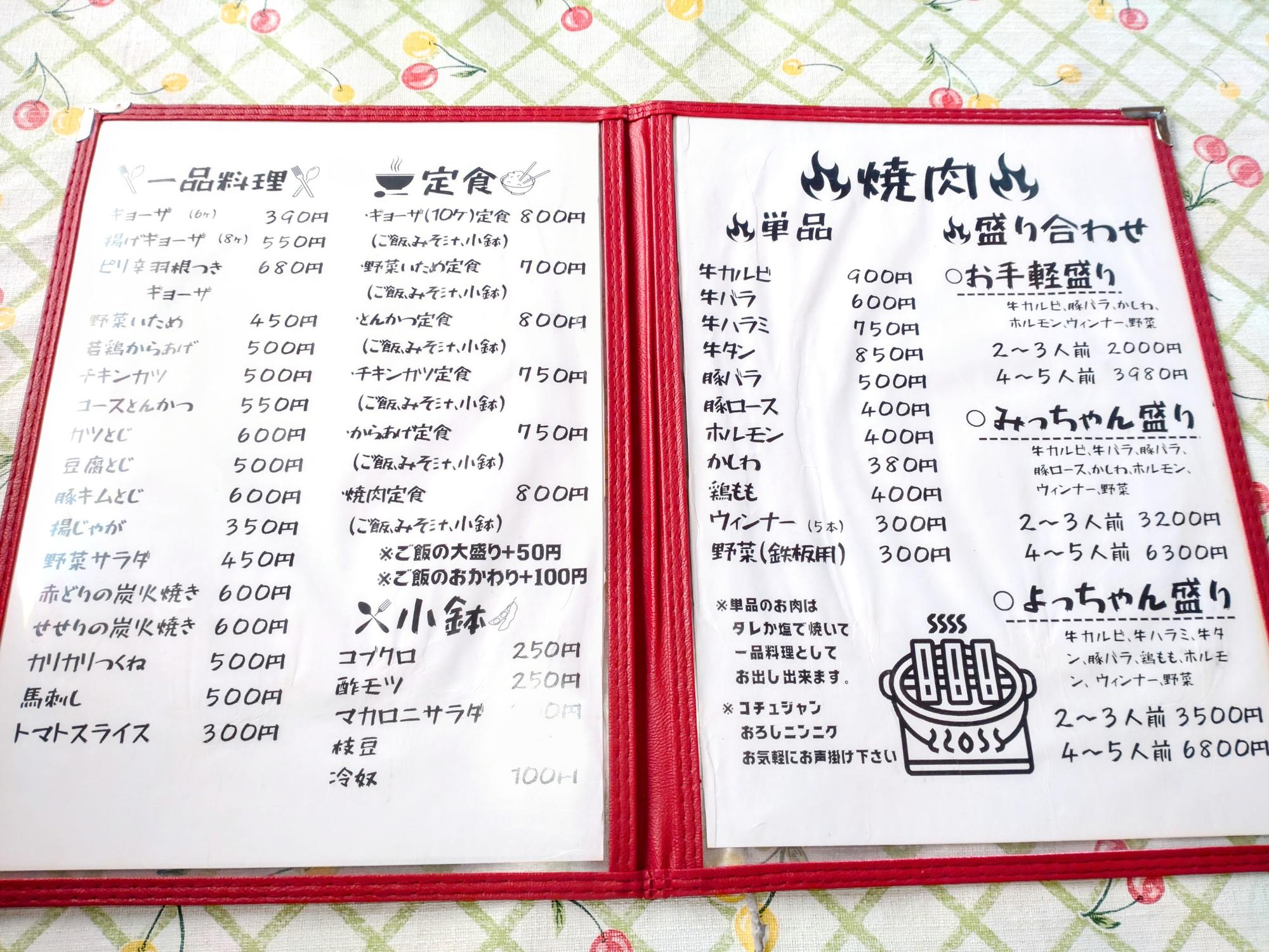 そう思ってしまったことを後悔する人情溢れる店主さんのボリュームも愛情も満点のお料理をご紹介する前に、まずはメニューをどうぞ。
