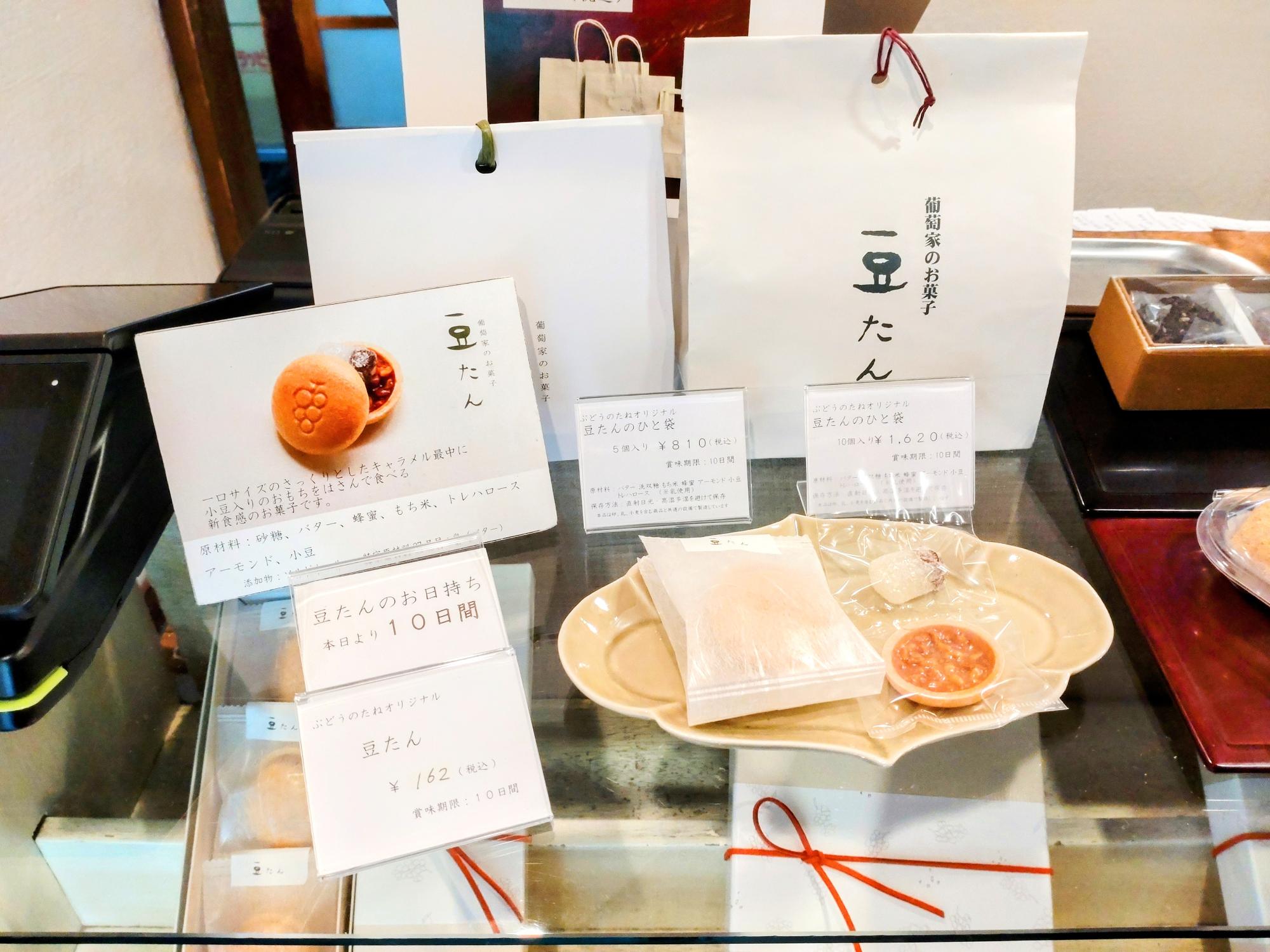 全国で豆たんが店舗で購入できるのは、博多リバレインモール1Fにある『ぶどうのたね博多』と、福岡市にある『ぶどうのたね天神』(どちらも数量限定)。