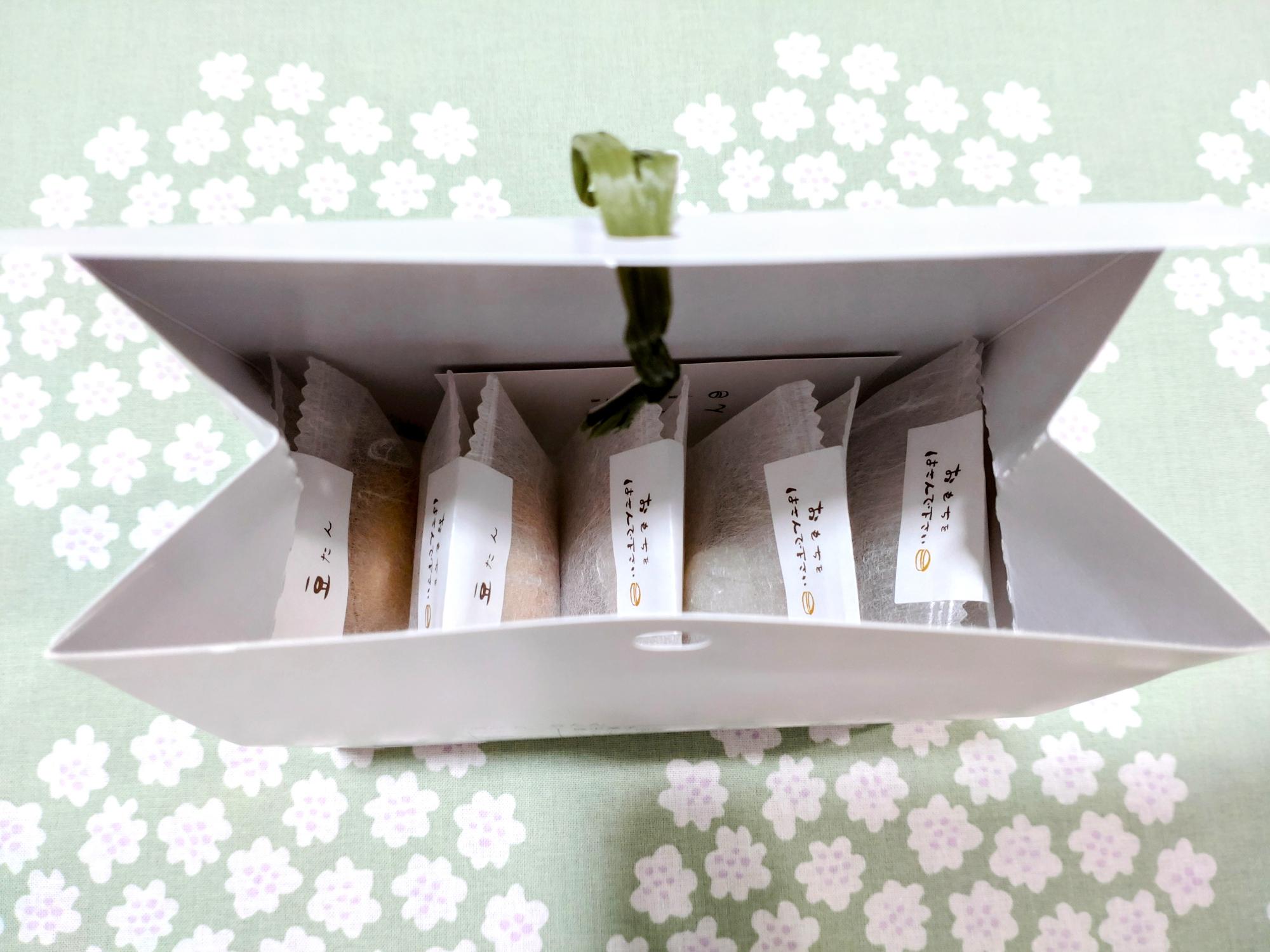 化粧箱に入っていない5個入りの豆たんは、ちょっとした手土産としてもおすすめです。