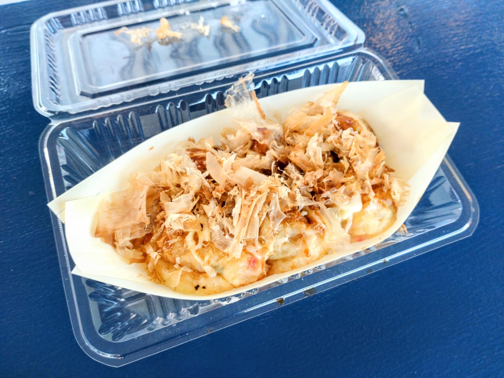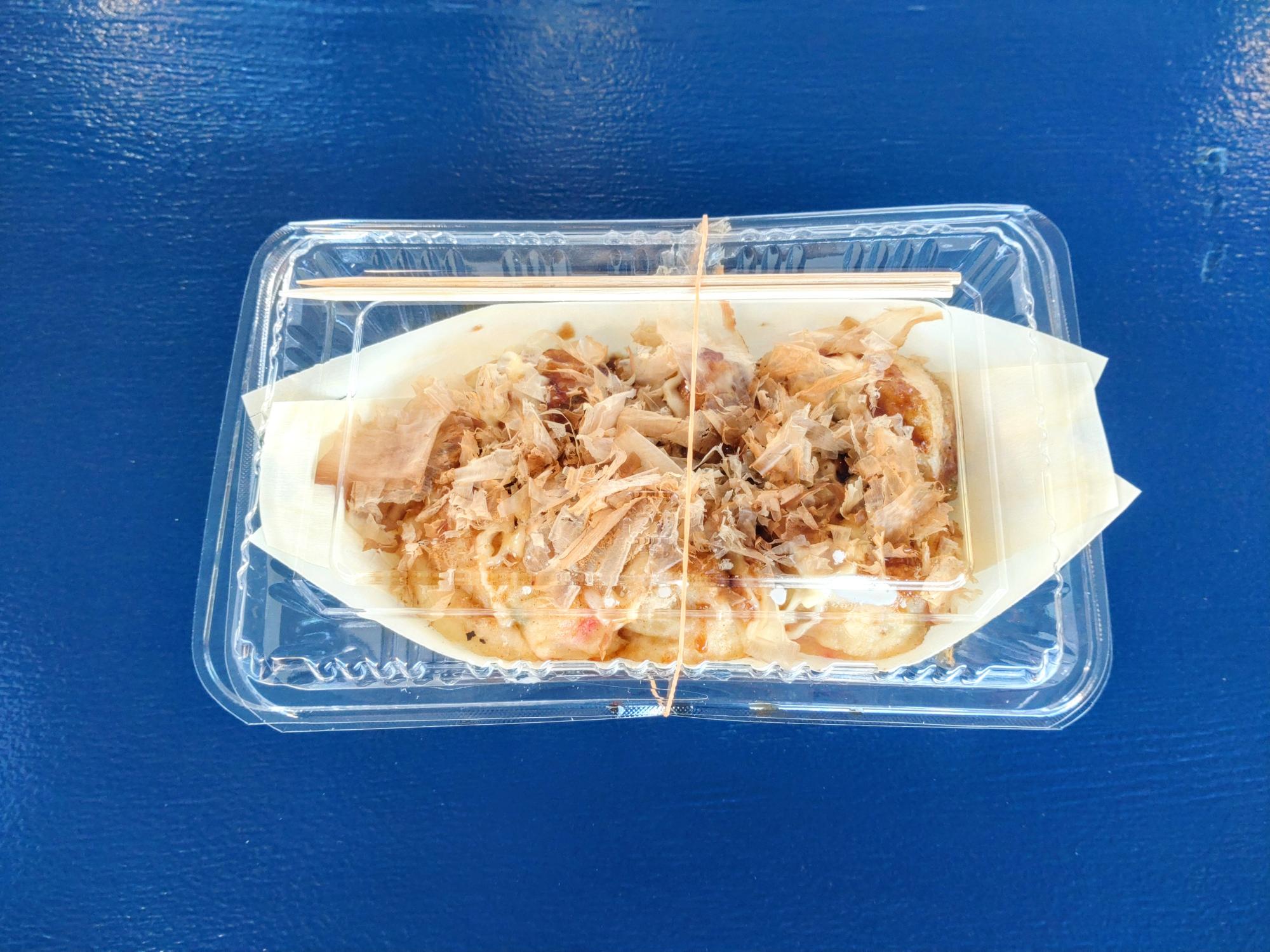 通常のたこ焼きと比べると、よく見ると見た目ほんの少し白っぽい感じがしますが…