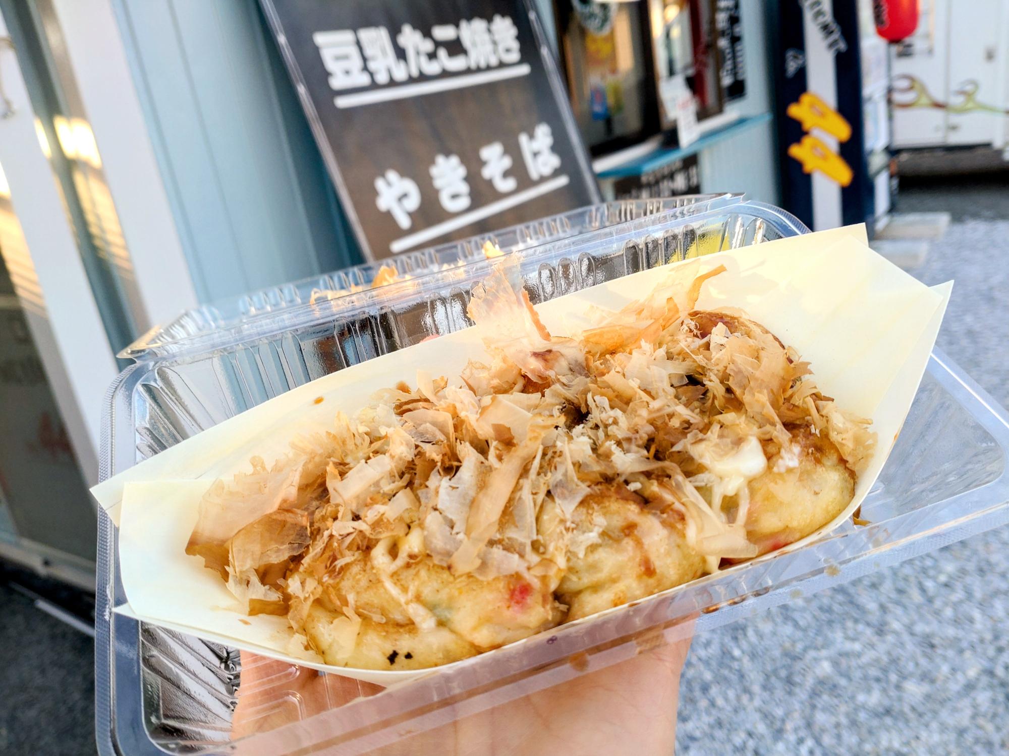 私自身豆乳たこ焼きがメインのたこ焼き屋さんに出会ったのは初めてで、豆乳たこ焼きの味も想像できない。