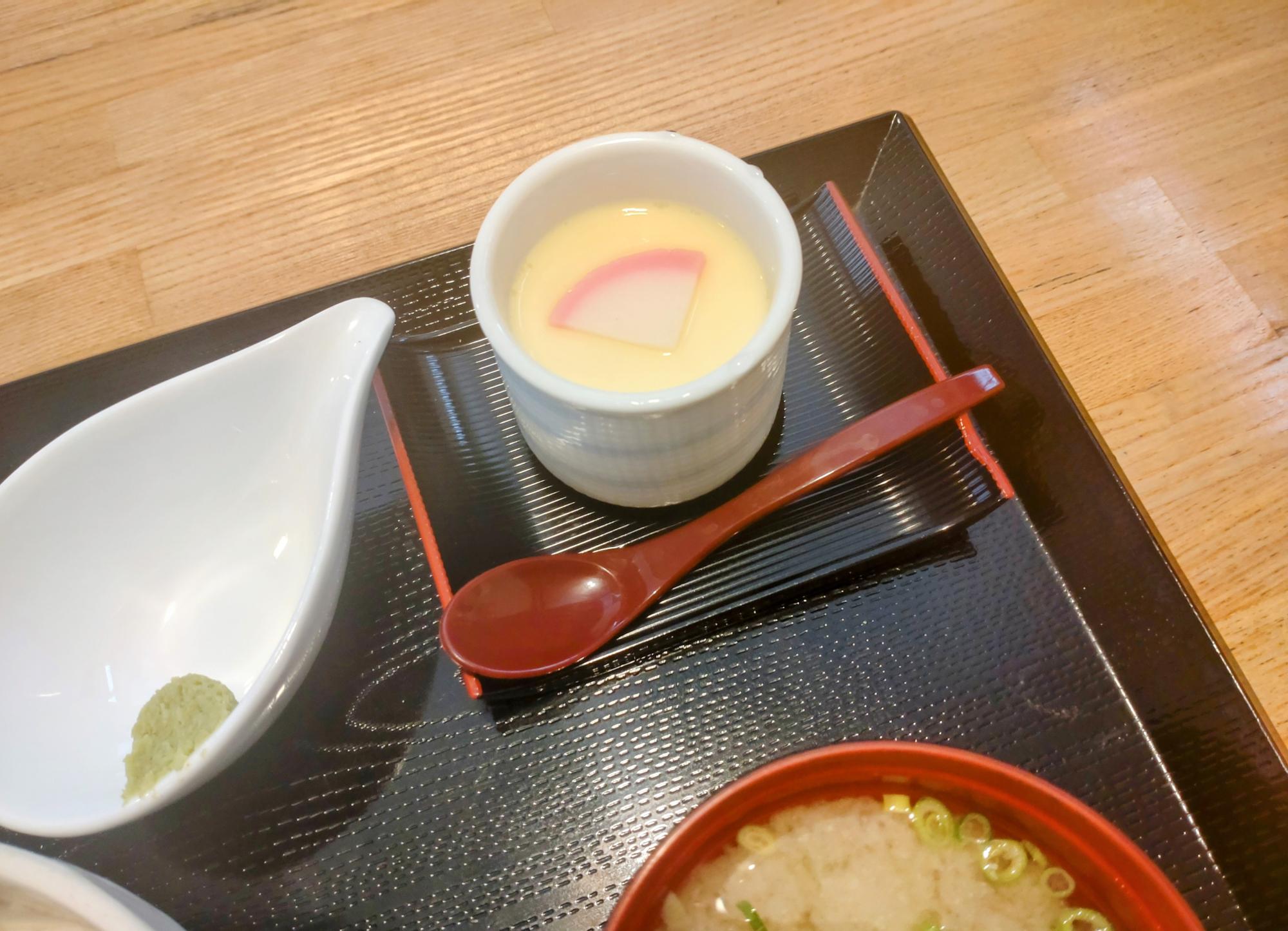 定食にはお味噌汁とミニサイズの茶碗蒸し、お漬物も付いています。