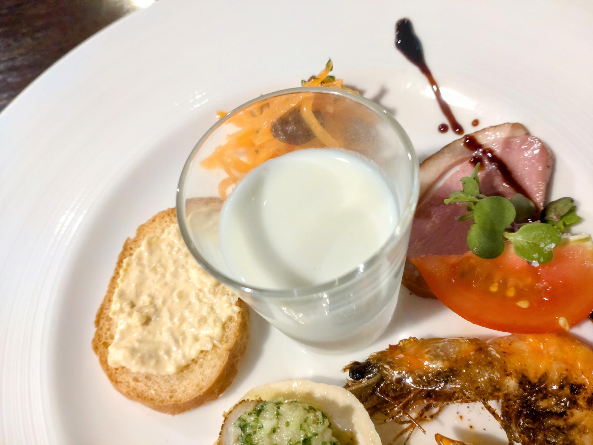真ん中の白いスープは、なんと新玉ねぎの冷製スープ!