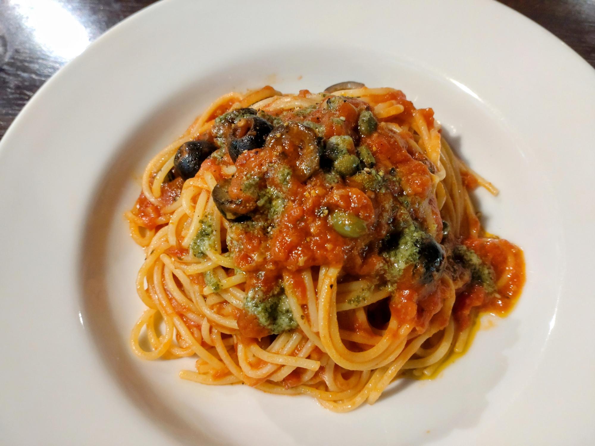 「ブッタネスカって何?」と思うも…トマトソースがベースで少し辛さもある大人向けのパスタでした。